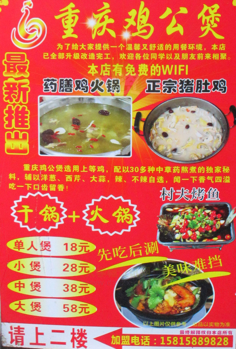 | 北亭大街南端-重庆鸡公煲最新推出 药膳鸡火锅 正宗猪肚鸡 村夫烤鱼 | 用餐环境升级完成 更加舒适 | ||||||