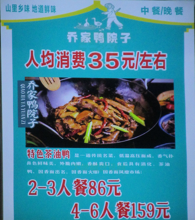| 贝岗商业城东外列临路边 新开店-乔家鸭院子 人均消费35元左右 特色茶油鸭2-3人餐86元,4-6人餐159元 推荐菜品-乡里谷鸭,田螺排骨,鱼籽鱼泡火锅,铁板鲫鱼 | ||||||