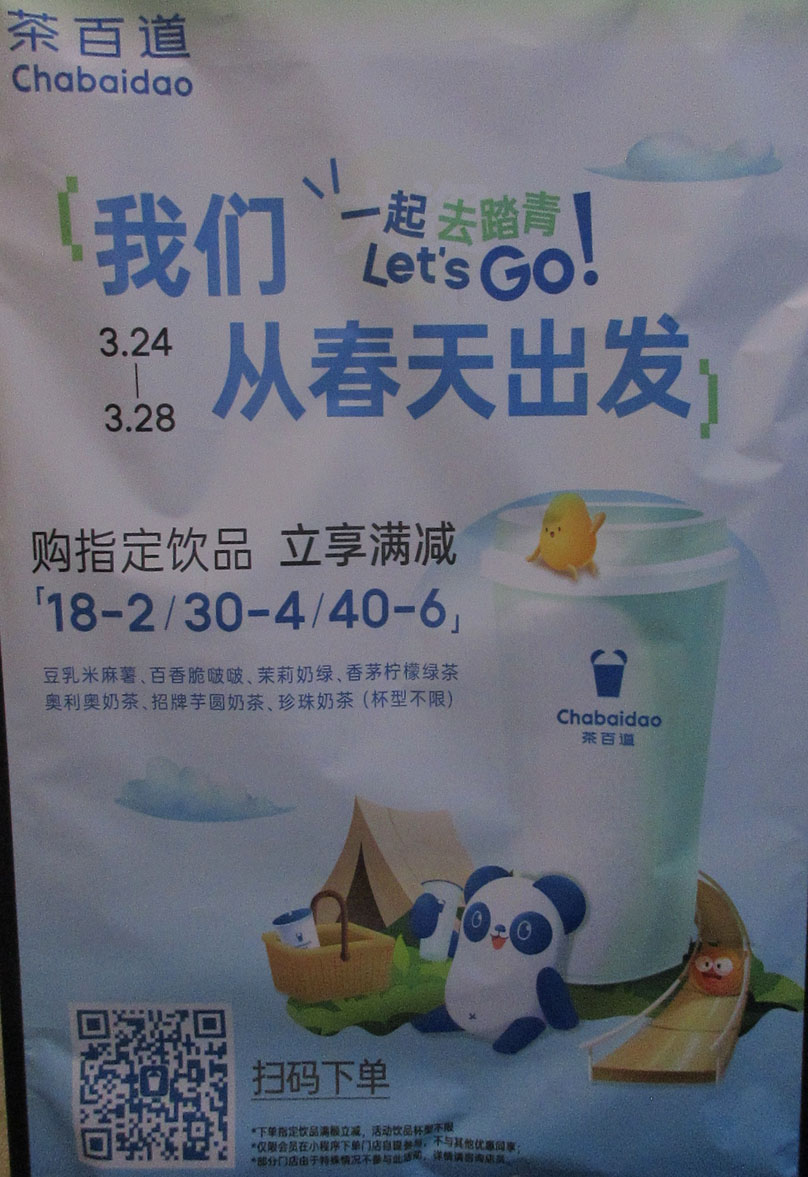 | 贝南大街中东位约 茶百道 3.24-3.28 购指定饮品,满18减2 满30减4 满40减6 仅限会员在小程序下单门店自提参与 | ||||||