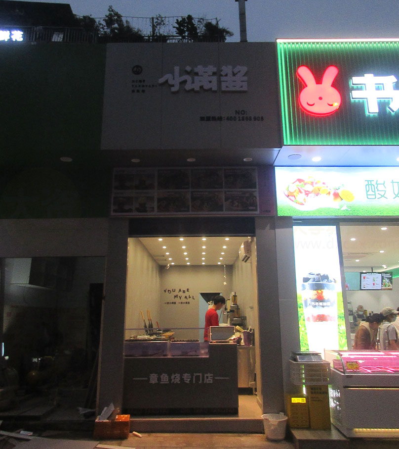贝南大街中段偏西 新装开了家叫小满酱的,店面不大,看着像是也在试业中了 好像是专门做什么章鱼烧应该是日本料理吧,同时看到还有什么茶