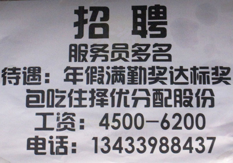 贝岗 招聘服务员多名 工资4500-6200 电话13433988437 |
