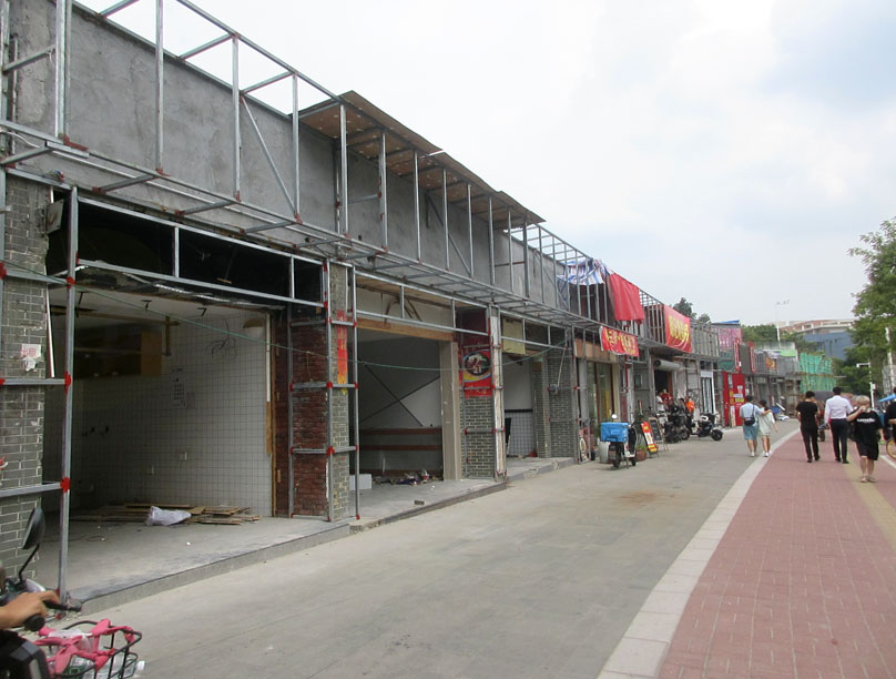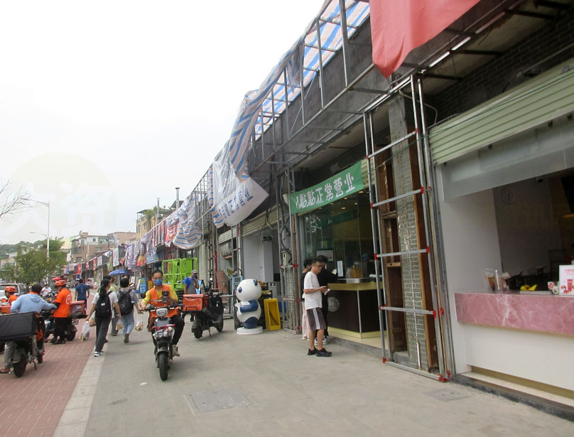贝岗村贝南大街整一列商铺招牌门面统一更新工程看样子是不是得国庆后才能完工见好啊 目前还是看到砖墙+框架模样以及各店的临时挂幅