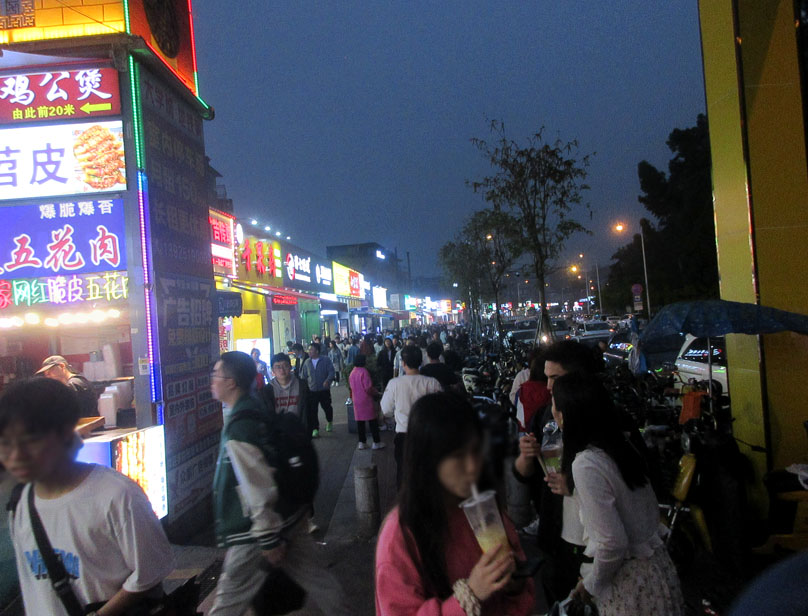 | 今天恰逢周六又是4月1号愚人节,贝岗大街西端&状元食坊入口 傍晚实时情景 | ||||||