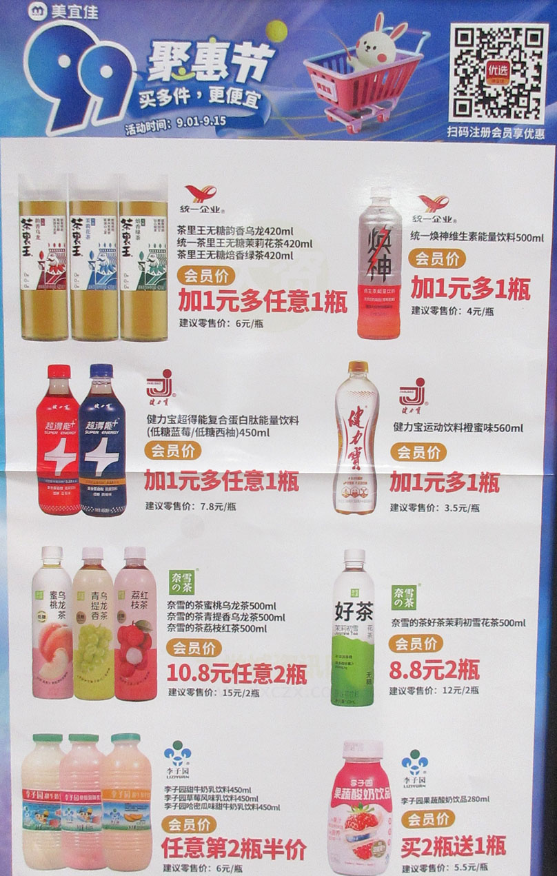 | 康衢大街西 美宜佳便利店 聚惠节 买多件,更便宜 活动时间9.1-9.15 另茶裹王9.1-9.30 | ||||||