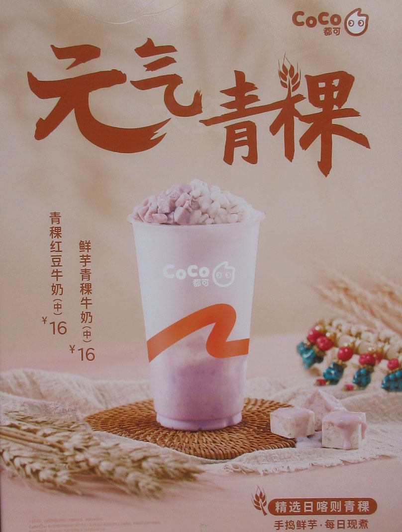 | 贝岗贝南大街中 COCO都可茶饮 元气青稞系列中杯16元 青稞红豆牛奶,鲜芋青稞牛奶 精选日喀则青稞,手捣鲜芋,每日现煮 | ||||||