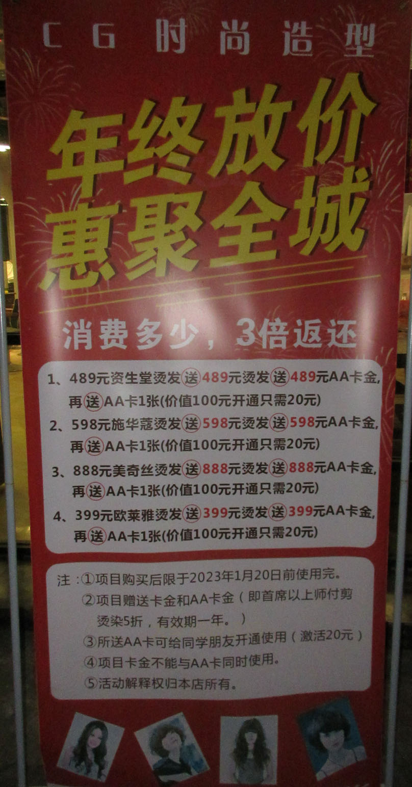 贝岗新天地东侧中旁边 CG时尚造型 年终放价,惠聚全城 消费多少,3倍返还