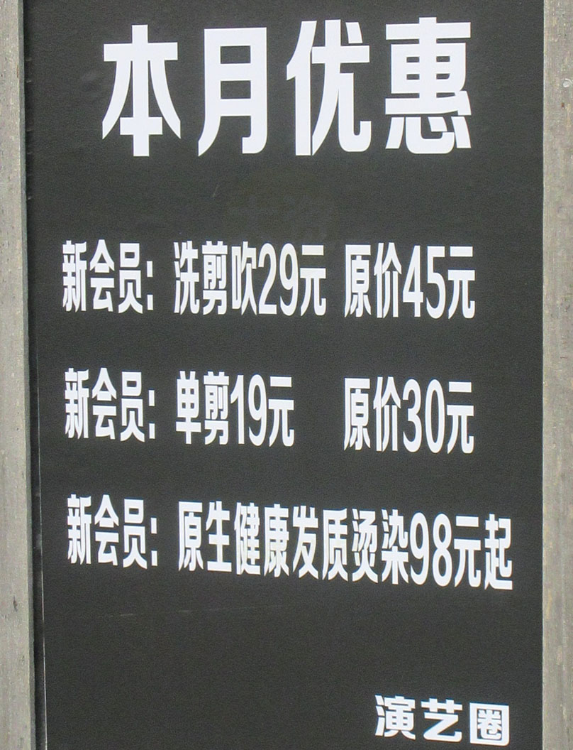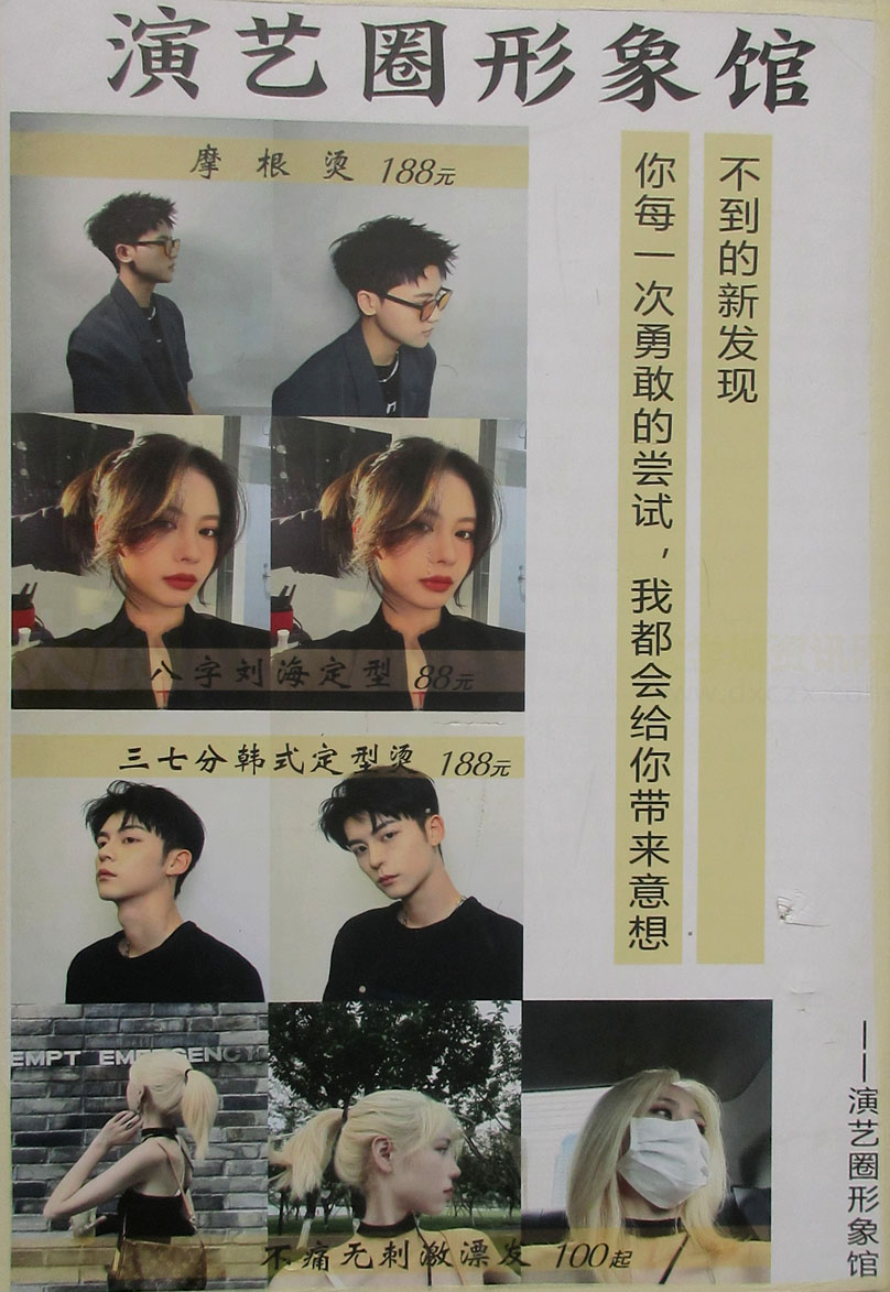 | 贝岗贝南大街中-演艺圈本月优惠 摩根烫188元,八字刘海定型88元,三七分韩式定型烫188元,不痛无刺激漂发100元起 | ||||||