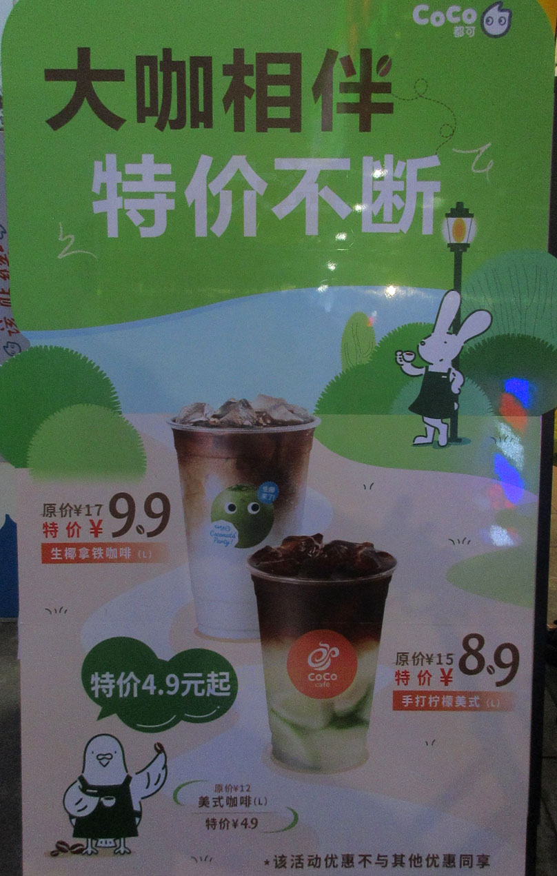 | 贝南大街中东位约 CoCo茶饮 近期特价优惠 生椰拿铁咖啡原价17特价9.9元 手打柠檬美式原价15特价8.9元 美式咖啡原价12特价4.9元起 | ||||||