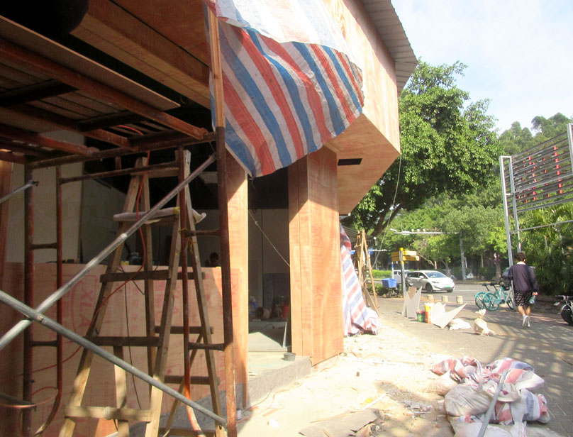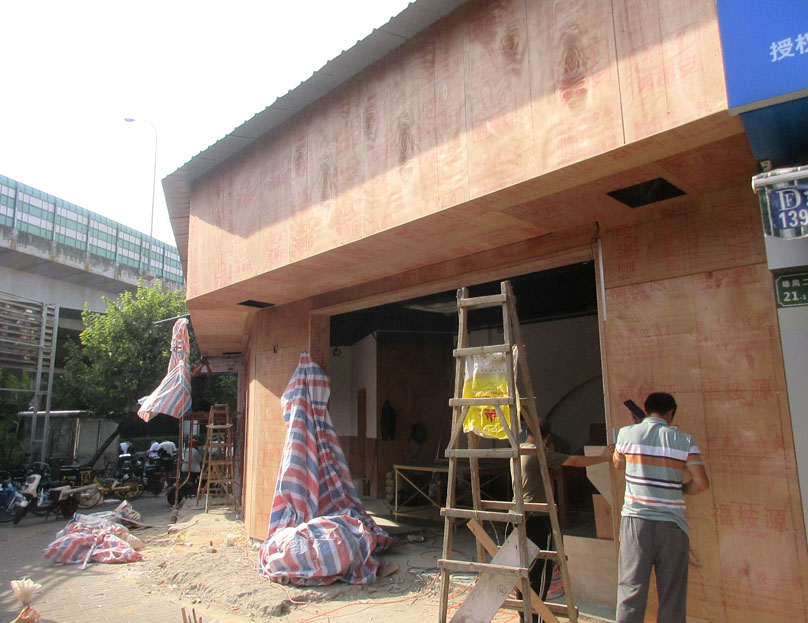 | 北亭临中环高架桥转弯处这家在装修的两个连铺位店 看到外观门面已有些棱角形状了 不过,看着要装好完全也还得将近一个月吧 | ||||||