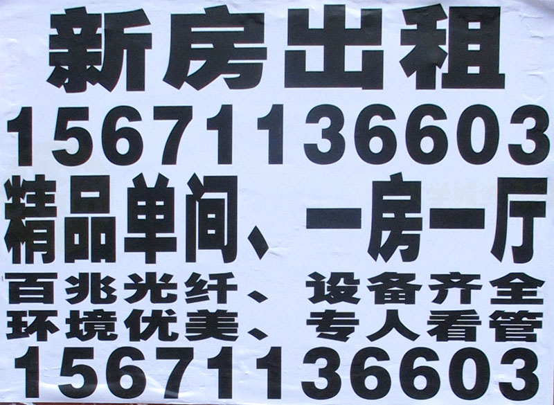 | 【新房出租】15671136603精品单间、一房一厅 百兆光纤、设备齐全 环境优美、专人看管 | ||||||