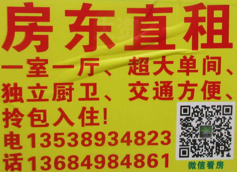 | 北亭-房东直租 一室一厅 超大单间 独立厨卫 交通方便 拎包入住 电话13538934823 扫码微信看房 | ||||||
