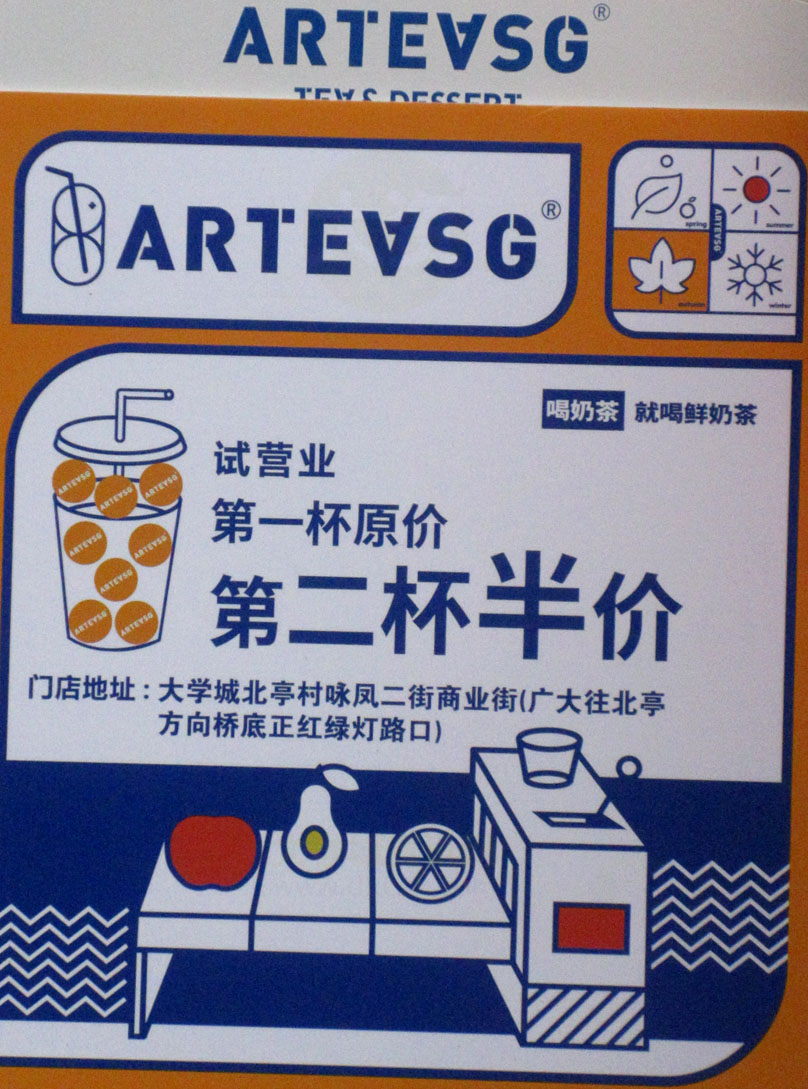 | 北亭村口临中环高架桥侧-ARTEASG鲜奶茶 试营业 第一杯原价第二杯半价 | ||||||