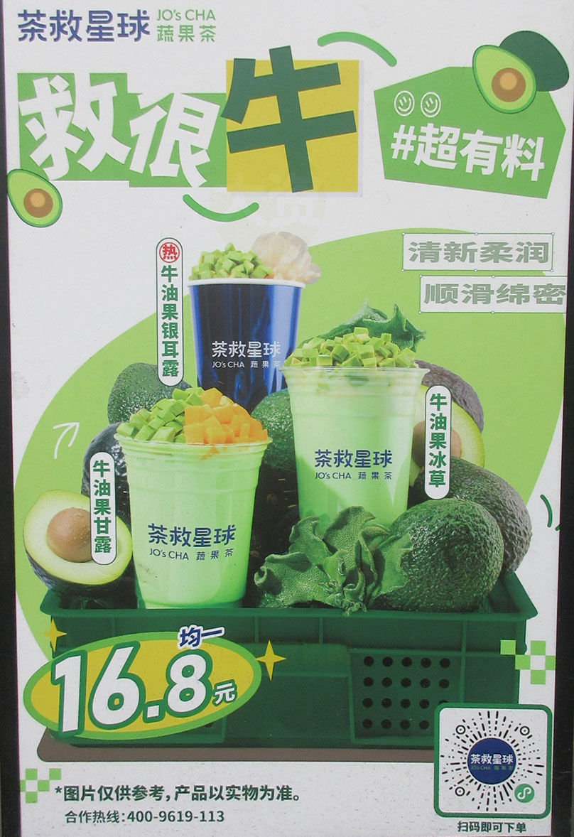 | 北亭临中环村口 茶救星球 救很牛,超有料 牛油果银耳露 &甘露&冰草均一价16.8元 清新柔润,顺滑绵密 扫码即可下单 | ||||||