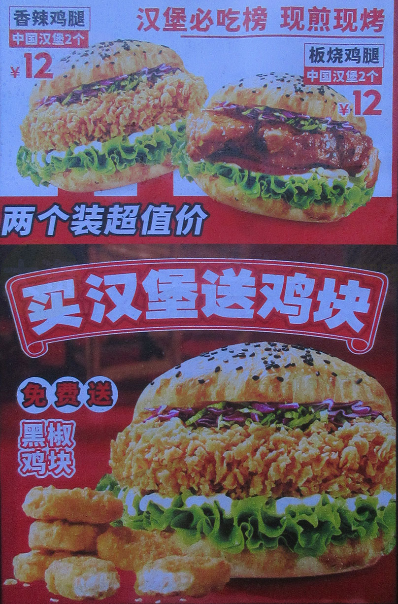 | 北亭临中环村口 今天新开张了一家专卖汉堡店 叫熊猫塔塔 开业期间,有充值免费送套餐活动 香辣鸡腿&板烧鸡腿2个装超值价12元 买汉堡免费送鸡块 | ||||||