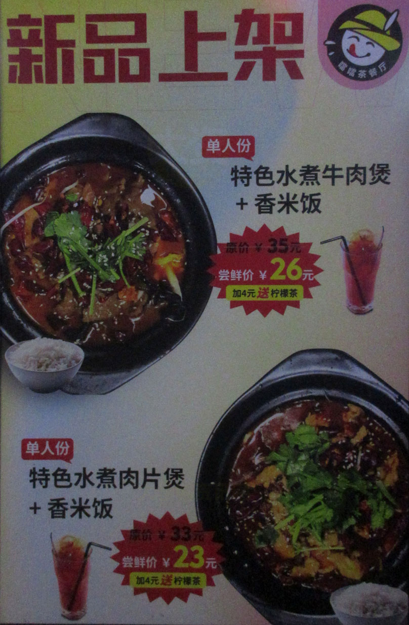 | 东门广场T8栋西列中北 噹噹茶餐厅 新品上架 特色水煮牛肉煲+香米饭,尝鲜价26元,特色水煮肉片煲+香米饭,尝鲜价23元,以上加4元还送柠檬茶 | ||||||