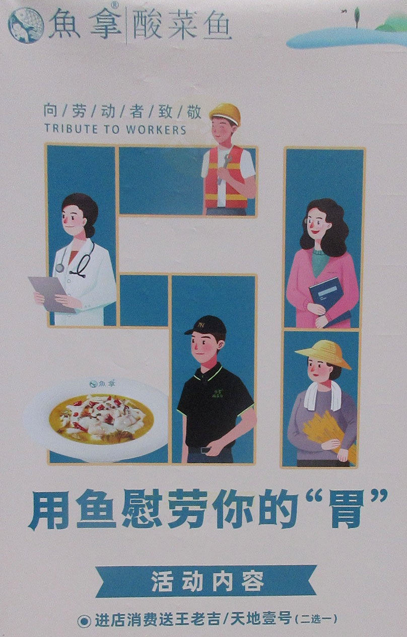 | 八号楼西列中-鱼拿酸菜鱼·向劳动者致敬 进店消费送王老吉/天地壹号(二选一) | ||||||