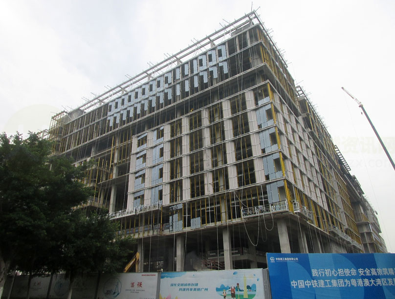 北区计大产业园一号楼外立面玻璃幕墙已在有序安装进行中 目前视看已完成大约近半墙体进度面