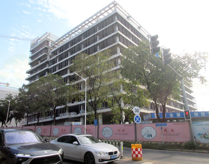 北区临中环 计算科学与大数据产业园区四号地块北半部规划所建楼已经率先拆去施工棚架围挡,并且似已安装好玻璃幕墙框架,看来这四号地块北侧楼将成为整个产业园区最先建成呈现部分