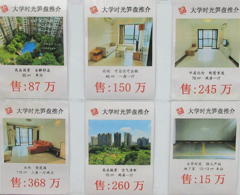 大学时光代售 高层园景30平米单间87万;北向一房一厅共45平米150万……地下室车位12-13平米15万 |