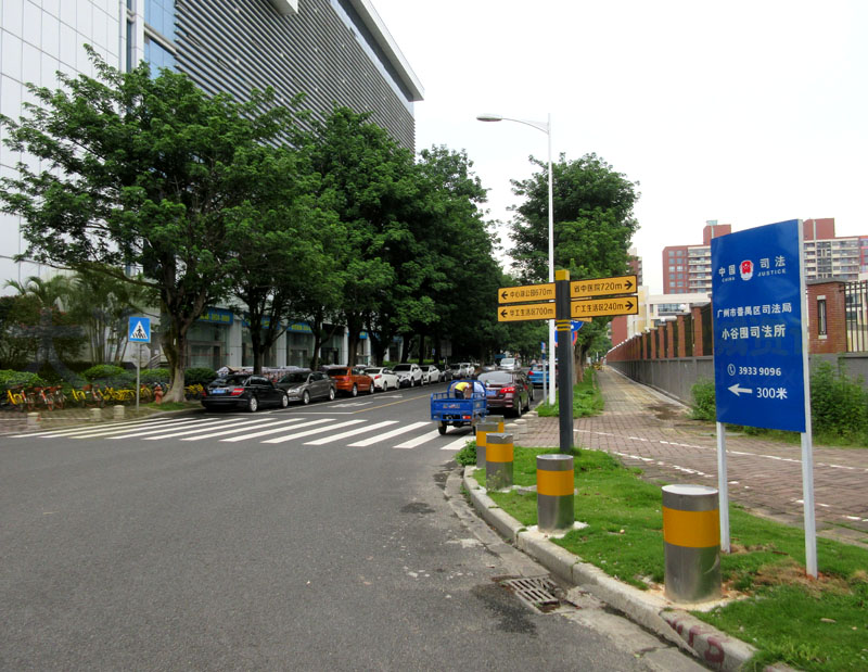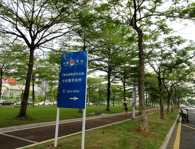 | 南区多个路段口近日新立了番禺区司法局小谷围司法所的指引招牌 | ||||||