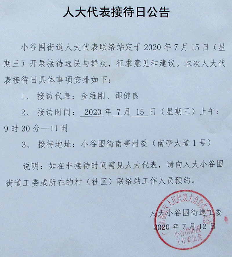 | 人大代表接待日公告 | ||||||