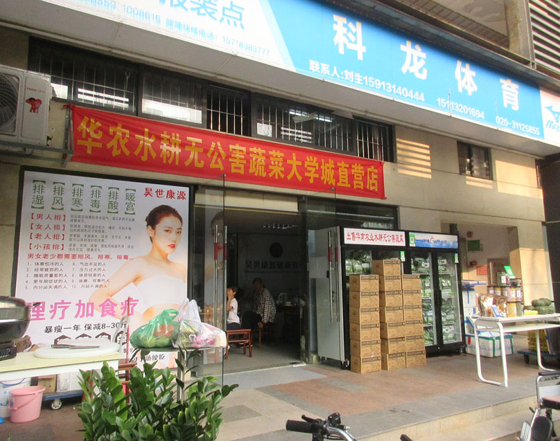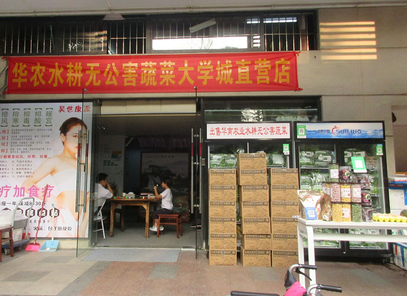 | 大学时光西列北端的昊世康源健康管理似乎内里还是门外又复合式开了个华农水耕无公害蔬菜大学城直营店点 | ||||||