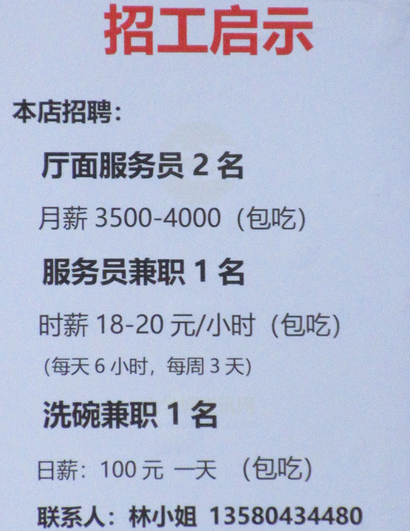 | 星汇文华一期东北 潮点烧腊茶餐厅&Just To Eat 招聘店面服务员2名,兼职1名,洗碗1名 | ||||||