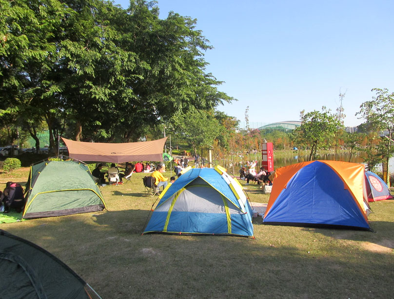 中心湖北岸&近中心体育场一带 已经是比较惯常地见到环湖边最多帐篷和热闹的场景 今天是周六和节日,天气又比较阳光和煦舒适