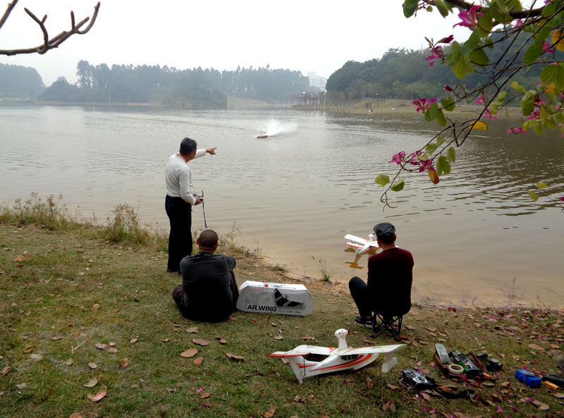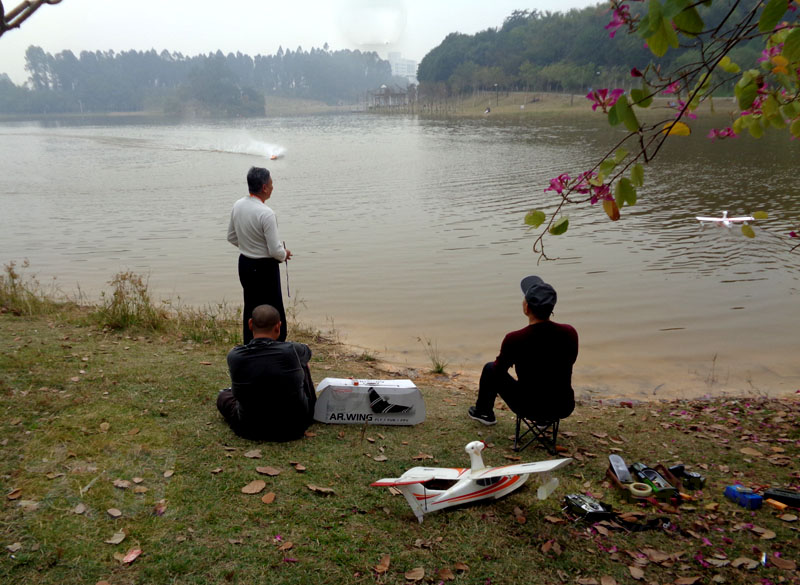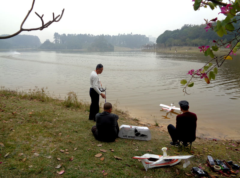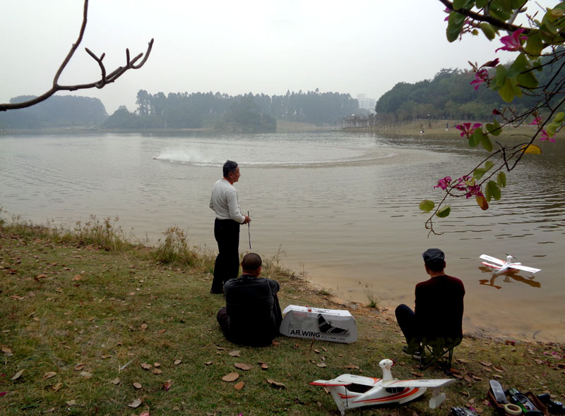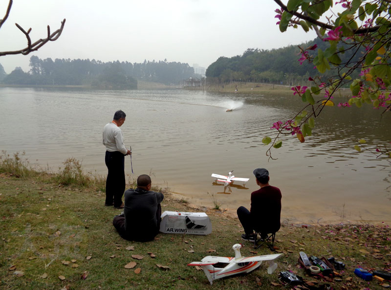 | 中心湖东北部湖面有人在玩遥控小型飞艇和小型水空飞机 | ||||||