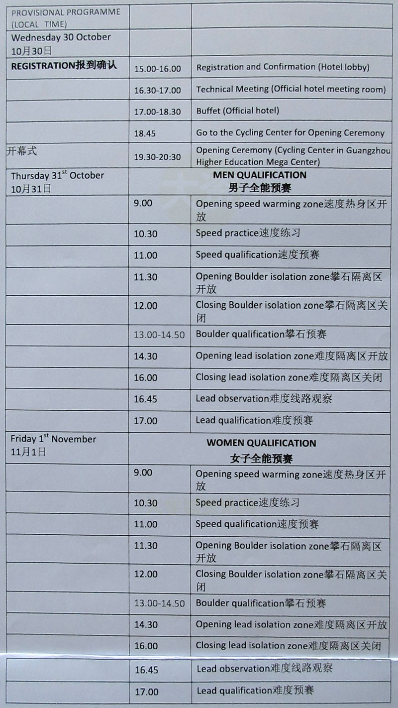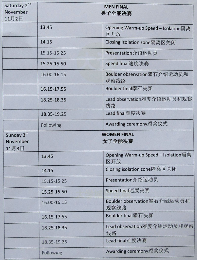 | 2019国际攀联中国公开赛-日程安排详细了解 | ||||||