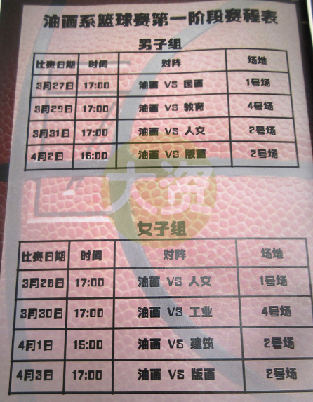 | 油画系篮球赛第一阶段赛程表 | ||||||