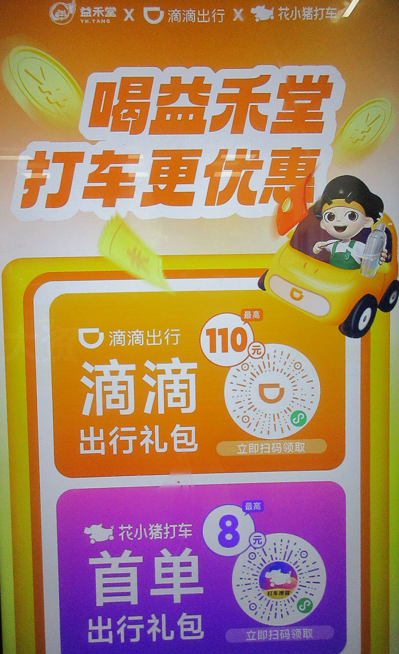 | 喝益禾堂打车更优惠 滴滴出行礼包最高110元,花小猪打车首单出行礼包最高8元,扫码即可领取 | ||||||