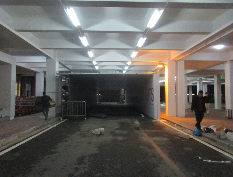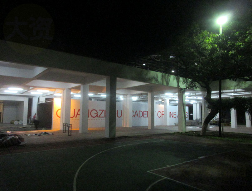 广美70周年校庆主会场-大学城校区体育馆内外 傍晚时分还在加紧布场中