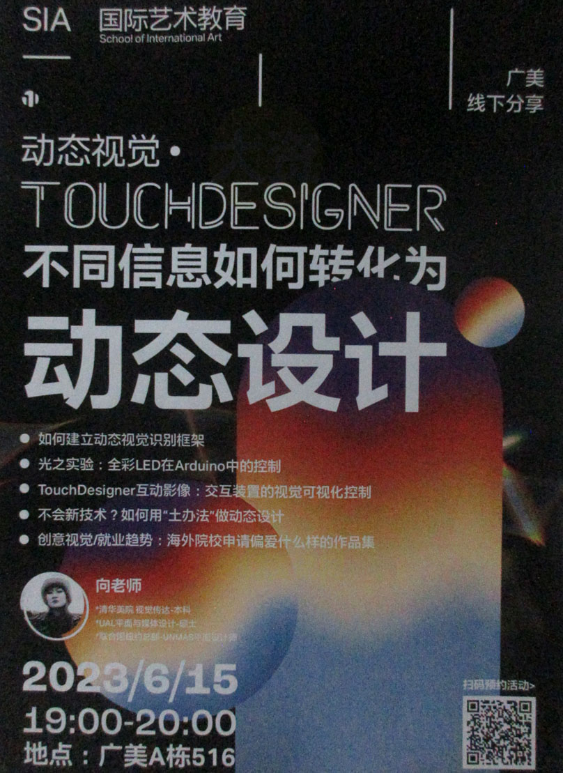| 线下分享会·不同信息如何转化为动态设计 2023.06.15周四晚19点-20点 教学区A栋516 | ||||||