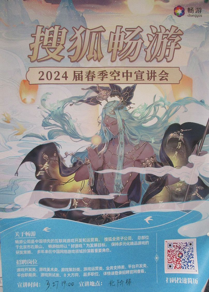 | 广美-搜狐畅游2024届春季空中宣讲会 2024.03.27晚19点 教学区北阶梯教室 扫码投递简历 | ||||||