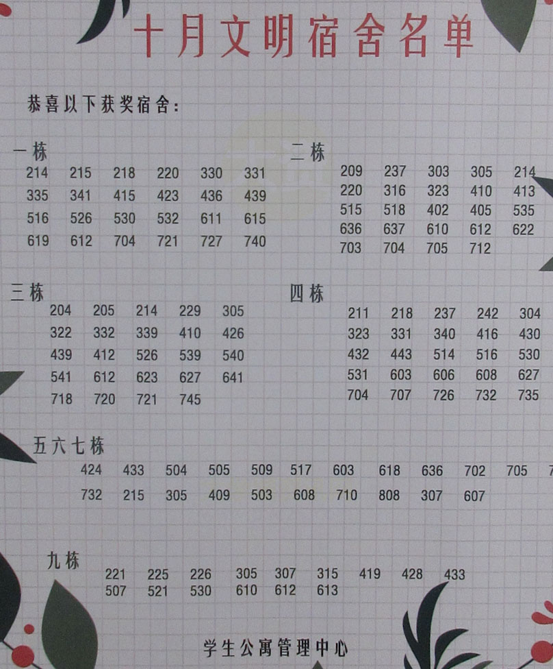 | 广美学生公寓·十月份文明宿舍名单公布 | ||||||