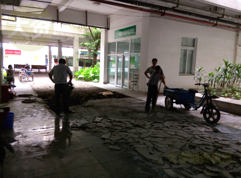 | 1栋一楼架空层校外租住服务站和警务室之间空地地板似乎在施工翻修换新 | ||||||