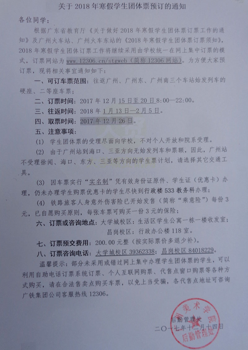 | 关于2018年寒假学生团体票预订的通知 | ||||||