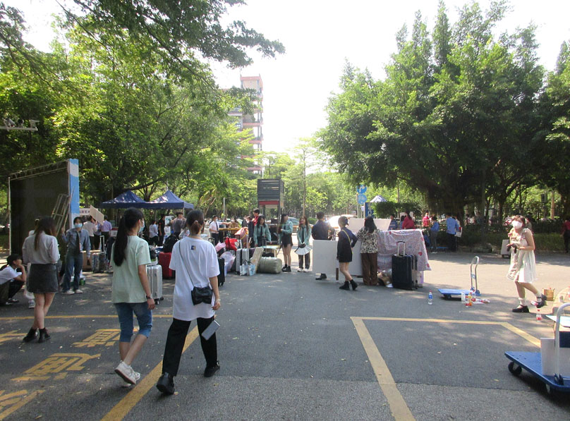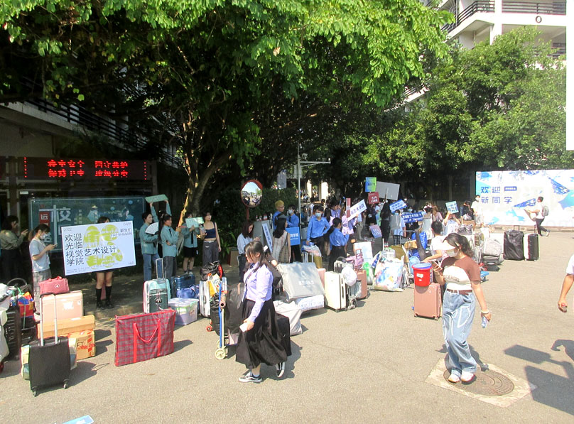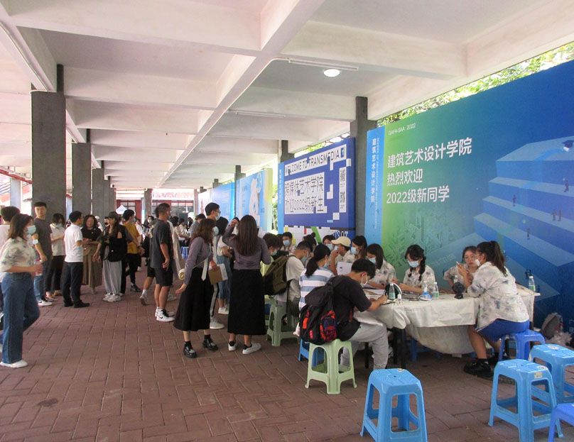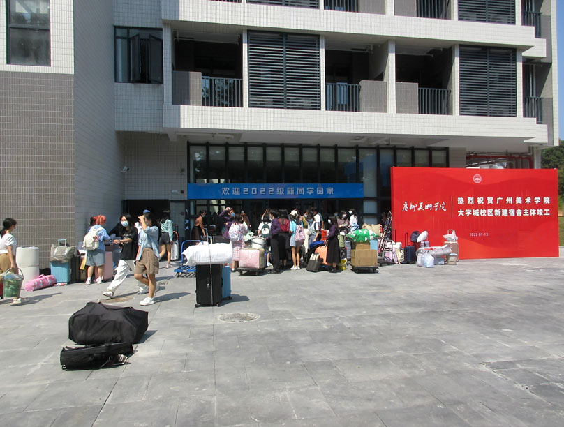 姗姗来迟 作为今年度大学城内所有高校中最迟新生报到的广美 今天也总算迎来2022级本科新生到校&报到 校园生活区内到处忙碌和热闹场景 本学期刚建成的增建的一栋学生宿舍楼也适时马上启用,据说能住约7、8、900人左右,今年广美继续有扩招近300人,本届新生人数达到又历史之最的1900多人,本身比较mini的广美近几年基本是逐年扩招个2、300人左右,但也感觉还是可以合适有,毕竟作为华南广东唯一的美术类艺术院校,每年招的人数就算现在已经达到2千人了,也还是说不上算多,或会因这点扩招而影响到有所降低教学水平或质量