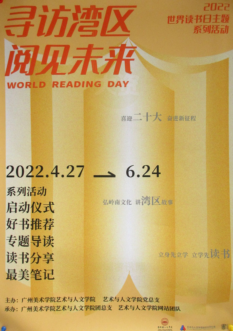 寻访湾区阅见未来·2022世界读书日系列活动2022.4.27-6.24 启动仪式 好书推荐 专题导读 读书分享 最美笔记 |