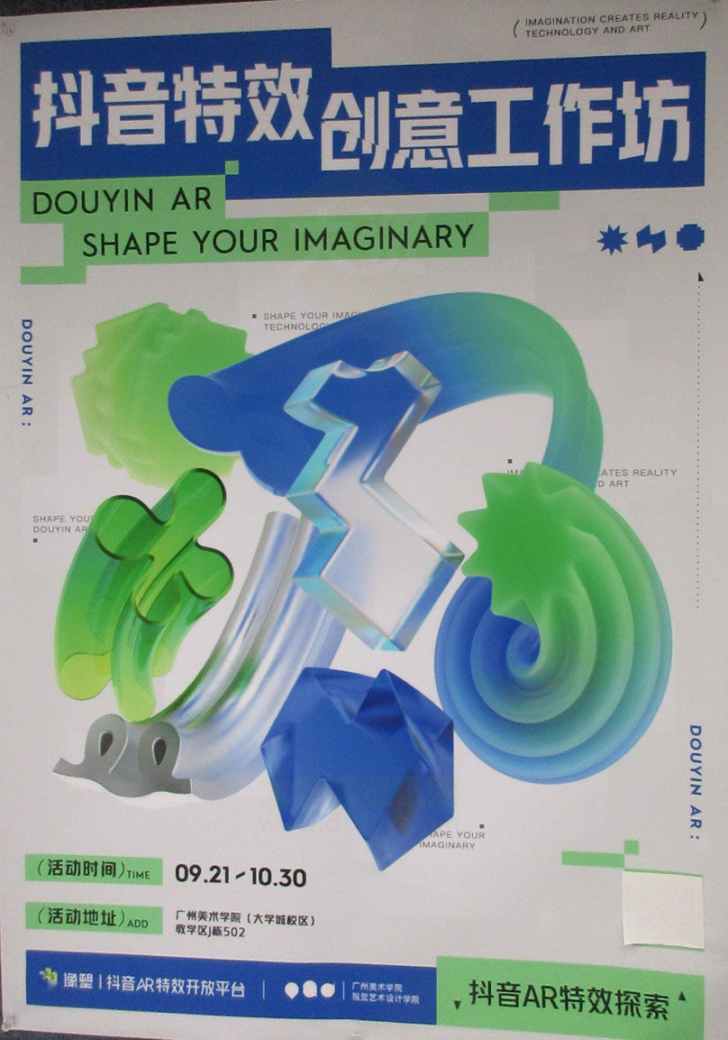 | 抖音特效创意工作坊·抖音AR特效探索 活动时间09.21-10.30 地点:教学区J栋502 | ||||||