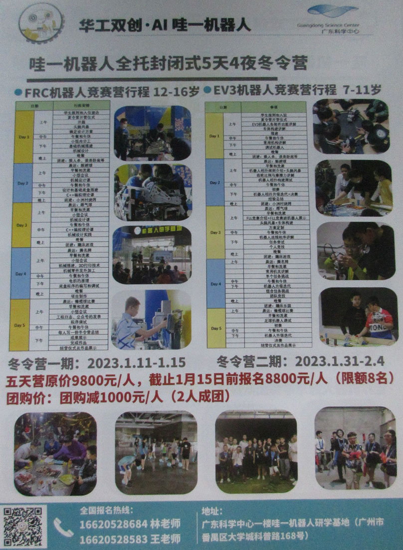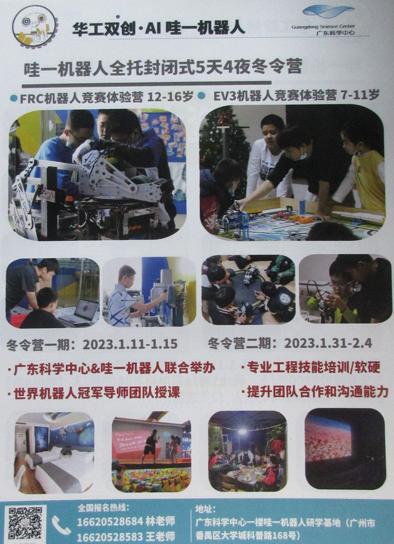 | 广东科学中心&哇一机器人联合举办-全托封闭式5天4夜冬令营活动 报名正在进行中 | ||||||