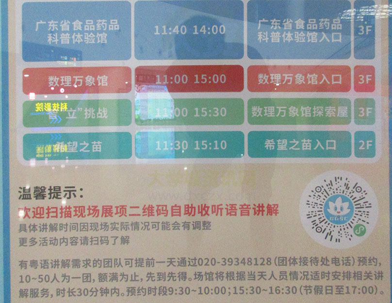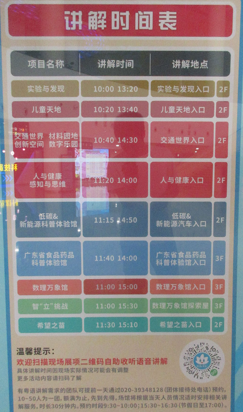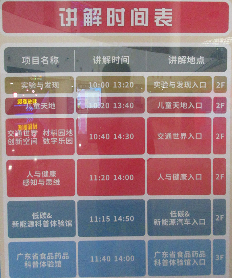 广东科学中心·日常展馆项目讲解时间表