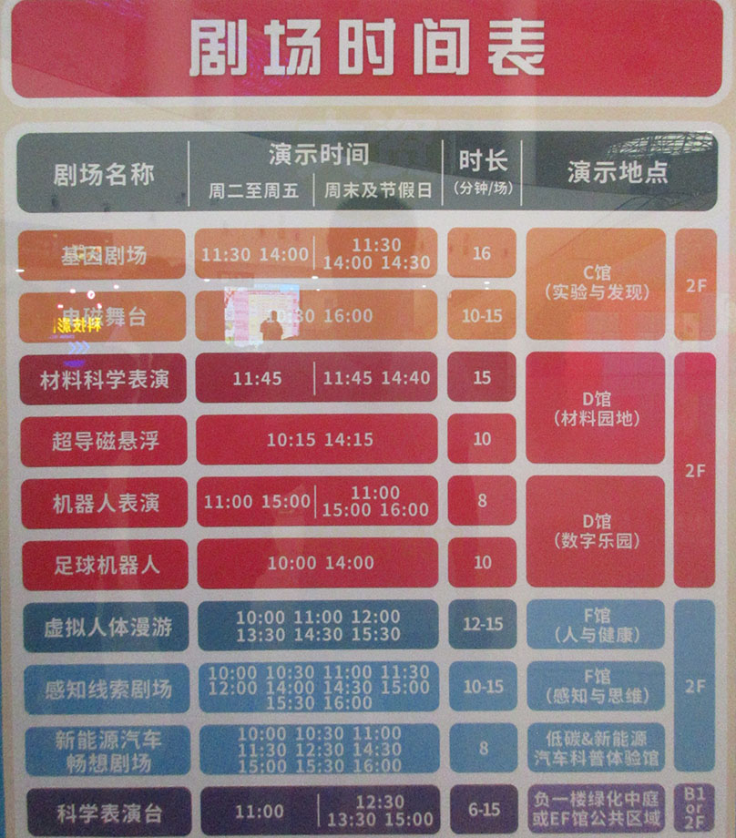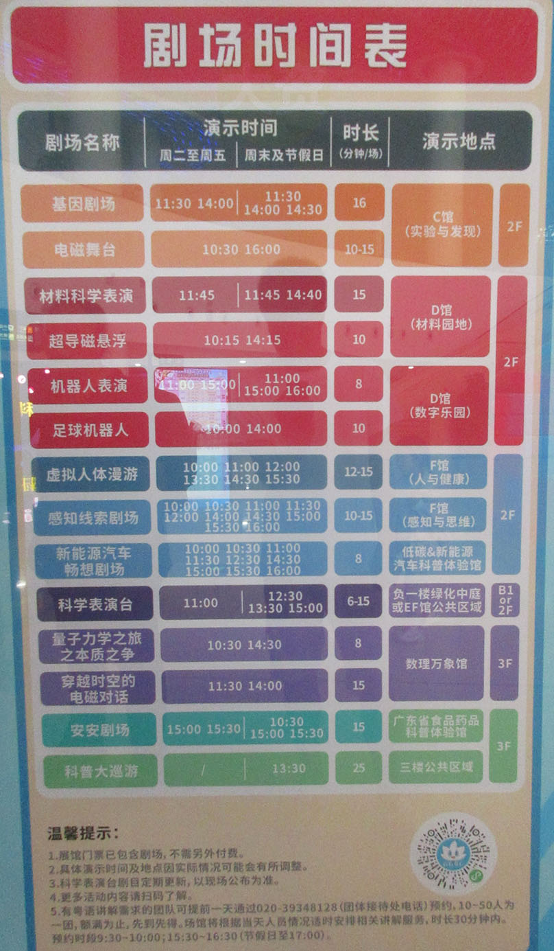 | 广东科学中心·剧场表演展示时间表 | ||||||