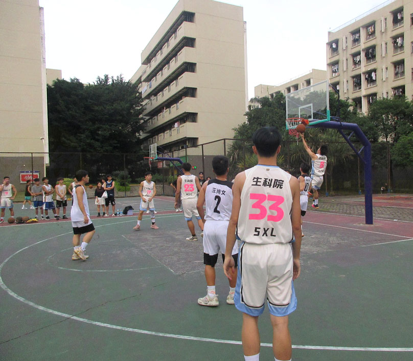 院际篮球赛第三名之争今傍午在生活区六栋篮球场 只打一场定胜负 外国语似有些无心恋战 生科院似又确实实力稍胜一筹 双方打着打着,有点像训练赛的感觉,最后生科院以较大分差获胜