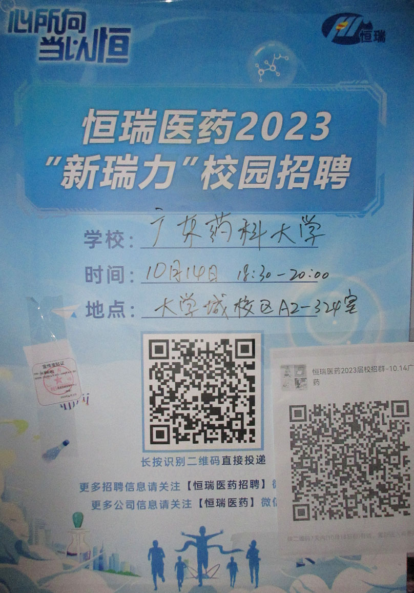 | 恒瑞医药2023“新瑞力”校园招聘 10月14日傍晚18点30分-20点 教学区A2-324 | ||||||