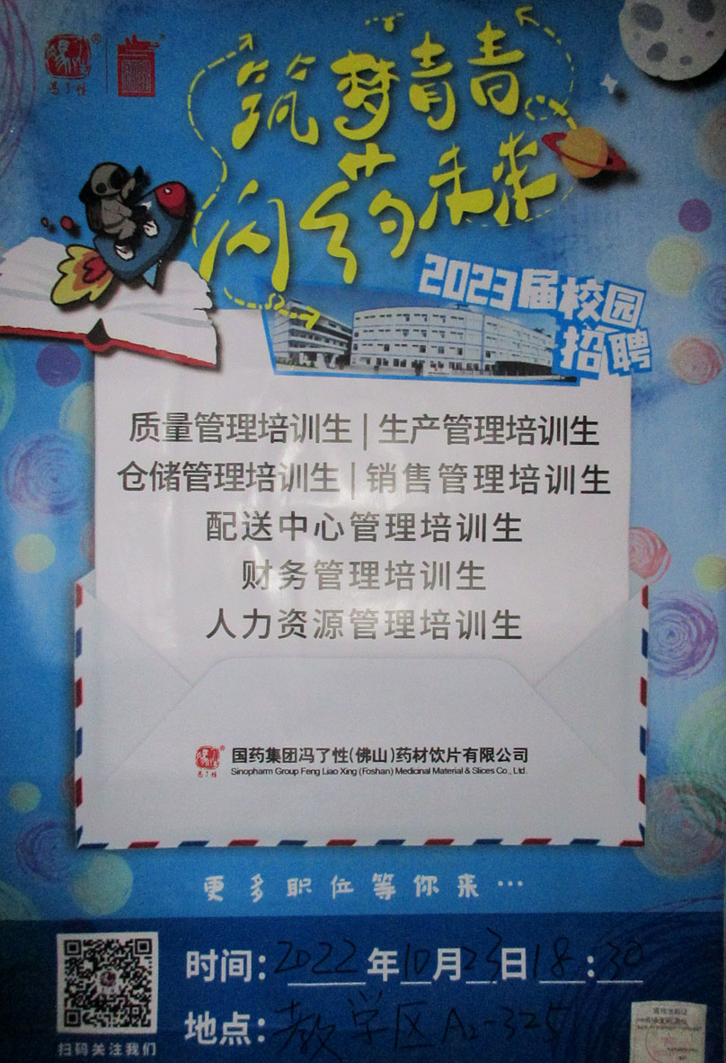| 国药集团冯了性2023届校园招聘 2022.10.23周日18点30 教学区A2-325 | ||||||