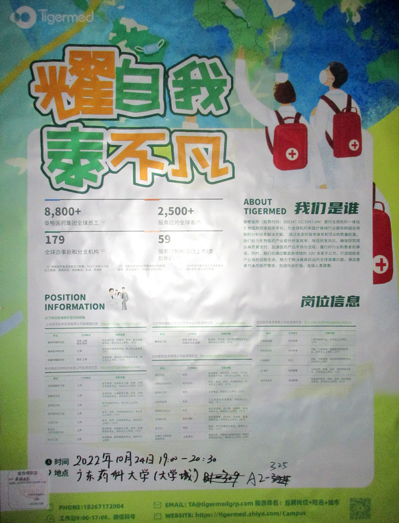 | 泰格医药2023校园招聘 2022.10.24周一晚19点-20点30 教学区A2-325 | ||||||