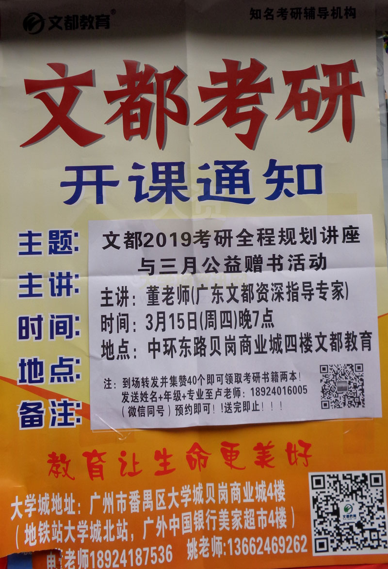 | 文都考研开课通知 3月15日(周四)晚7点 董老师 | ||||||