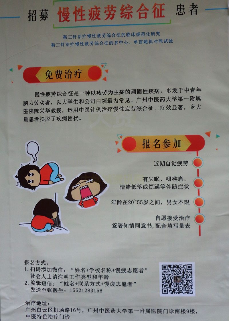 | 招募慢性疲劳综合征患者免费治疗 | ||||||